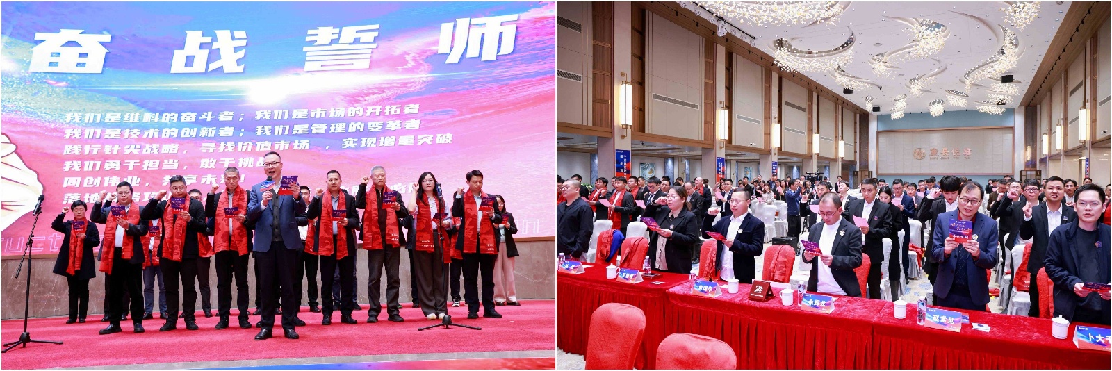 “使命必达” 环节则是责任的落实和决心的表态,陈总为3个集团级、6个股份公司级项目授旗,陈总从庄严的护旗队中接过战旗,逐个给各项目代表授旗,代表接过这份使命和责任,在喊出口号的那刹那展现出了他们坚决完成任务的决心。紧接着是“奋战誓师” 环节,陈良琴总带领股份公司领导、事业部班子上台宣誓,台下人员也一同庄严宣誓,誓言响彻全场,表达了全体beats365·(中国区)唯一官方网站人对实现25年公司战略目标、突破重点战略项目的坚定信念。